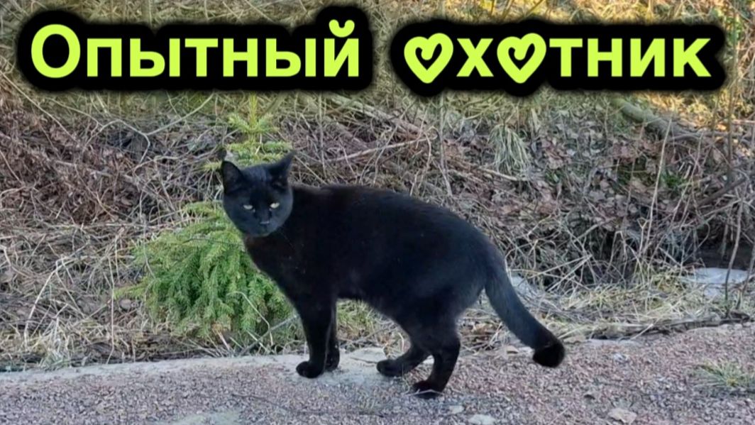Весна — время охоты и неожиданных эмоций. Черный кот и его добыча